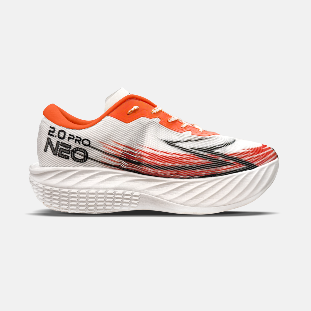 Một trong những điểm đắt giá của Neo Pro 2.0 là tấm đệm full carbon nguyên tấm (full carbon plate) – công nghệ vốn chỉ xuất hiện trên các mẫu giày cao cấp quốc tế – giúp tăng độ ổn định và lực phản hồi trên đường chạy thẳng hoặc đòi hỏi bứt tốc ở những kilomet cuối.