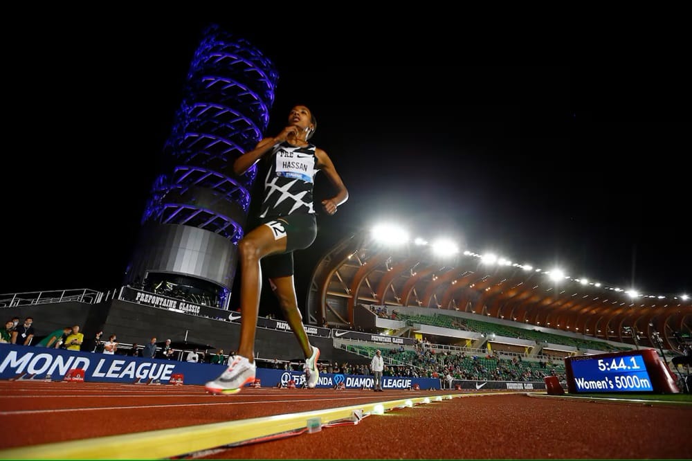 Như ở giải VĐTG 2019 tại Doha (Qatar). Các VĐV khác tập trung cho một nội dung thì Hassan bật mode siêu anh hùng, chiến thắng cả cự ly 1500m và 10.000m. Khán giả được chứng kiến một người bật từ chế độ chạy nước rút sang chạy bền, chỉ đơn giản như bấm điều khiển từ xa. Với cự ly 1500m, cô không chỉ vô địch mà chạy vòng cuối với tốc độ khiến đối thủ hoài nghi chính mình, còn với 10.000m thì cô chứng minh cho tất cả thấy rằng tốc độ và sức bền có thể song hành.